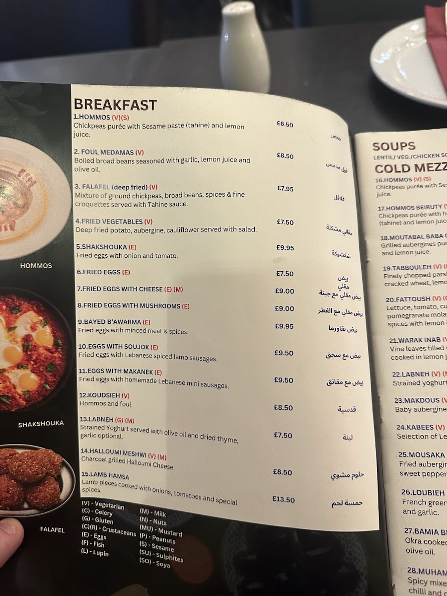 Starters include a variety of breakfast options like creamy Hommos and the spicy, savory Shakshouka. For healthy choices, try their crisp Seasonal Salad or tangy Cucumber Yoghurt.